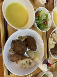 今年の忘年会では、昼食に🍄🟫ハンバーグと
